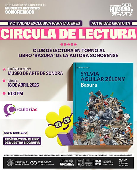 Participaremos con una círcula de lectura sobre Basura, novela de la escritora sonorense Sylvia Aguilar Zéleny. Habrá sorpresas para las asistentes.