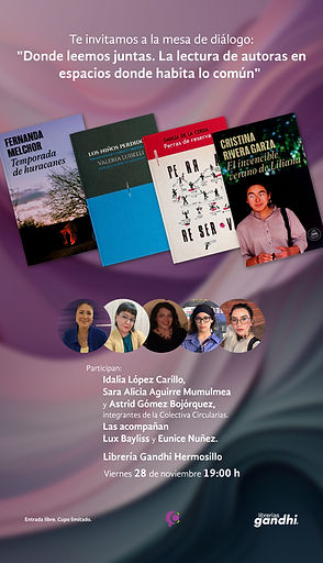 En este conversatorio tuvimos el honor de compartir espacio con las escritoras Selene Carolina Ramírez, Sylvia Arvizu y Suzette Celaya Aguilar para hablar sobre sus obras. Sin duda, una experiencia memorable para nosotras, quedó mucho por decir pero contamos con que tendremos más oportunidades. Además, ¡tuvimos foro lleno!